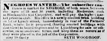 Seth Woodroof (c.1805  August 4, 1875) was a slave trader based in Lynchburg in central Virginia, United States. He was an interstate trader who ran what the Lynchburg Museum called the "most active and infamous"[1] slave pen in the city. He is believed to have been actively trading from approximately 1830 until the beginning of the American Civil War in 1861. Woodroof sat on the Lynchburg city council from 1858 to 1865.