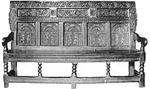 Constructed of oak or other hardwood, it was extremely heavy, solid, and durable. Few English examples of earlier date than the middle of the 16th century are extant; survivals from the Jacobean period are more numerous. Settles of the more expensive type were often elaborately carved or incised; others were divided into plain panels. They were commonly used in farmhouse kitchens or manorial halls. Its vogue did not long outlast the first half of the 18th century.[1]