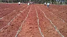 using ridge and furrow method for planting sugar cane setts in Sevanagala sugar factory plantation