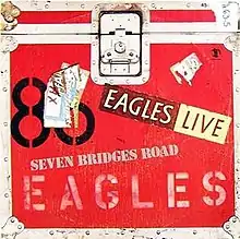 The Eagles recorded Seven Bridges Road for their Eagles Live concert album. According to band member Don Felder, when the Eagles first began playing stadiums the group would warm up pre-concert by singing Seven Bridges Road in a locker room shower area. Afterwards, each concert would then open with the group's five members singing Seven Bridges Road a capella into a single microphone. Felder recalls that it "blew [the audience] away. It was always a vocally unifying moment, all five voices coming together in harmony."[14] Following the release of the Hotel California album, that set's title cut replaced Seven Bridges Road as the Eagles' concert opener, and according to Felder, the band "rarely even bothered to rehearse with it in the shower of the dressing room anymore."[14] The song was restored to the set list for the Eagles' tour prior to the band's 31 July 1980 breakup with the band's performance of the song at their 28 July 1980 concert at the Santa Monica Civic Auditorium, which was recorded for the Eagles Live album released in November 1980. They issued it as a single, with The Long Run (live) as its B-side; the song reached No. 21 on the U.S. Billboard Hot 100 becoming the group's final Top 40 hit until Get Over It by the reunited band in 1994. Seven Bridges Road also became the third Eagles' single to appear on the Billboard C&W chart, reaching No. 55 there.[15] At the time the Eagles charted with Seven Bridges Road the song's composer Steve Young commented, "I didn't like the Eagles' version at first. I thought it was too bluegrassy, too gospel. But the more I hear it, the better it sounds."[4]