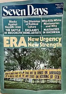 Seven Days was an American alternative news magazine written from a leftist or anti-establishment perspective.[1][2] Founded by antiwar activist David Dellinger and others, it was published from 1975 to 1980 by the Institute for New Communications, a non-profit organization in Manhattan.[3][2] The magazine ran without advertising for its first year,[4] and relied heavily on private donors through its final issue.[5]