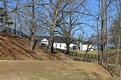 Seven Oaks Farm is a historic home and farm complex located near Greenwood, Albemarle County, Virginia. It was formerly known as Clover Plains and owned by John Garrett, who assisted with building the University of Virginia and was a bursar with the university. After Dr. Garrett's death, the farm was sold to the Bowen family and inherited by the Shirley family. In 1903, it was bought by Marion Langhorne of Richmond, a relative of Chiswell Dabney Langhorne, father of the famous Gibson girls, who lived at nearby Mirador. The land is named after the original seven oak trees on the property named after the first seven presidents born in Virginia. Only one of the original seven trees still standing after six were destroyed in 1954 in the aftermath of Hurricane Hazel. The main house was built about 1847–1848, and is a two-story, five-bay, hipped-roof frame building with a three-bay north wing. The interior features Greek Revival style design details. It has a two-story, pedimented front portico in the Colonial Revival style addition. Sam Black's Tavern is a one-story, two-room, gable-roofed log house with a center chimney and shed-roofed porch. Black's Tavern has since been moved to the adjacent Mirador property circa 1989. It was originally owned by Samuel Black, a Presbyterian minister of the Sam Black Church in West Virginia. Blacksburg, Virginia, was named after the family. Other buildings on the farm include an ice house, smokehouse, dairy, greenhouse, barns, a carriage house, a garage and several residences for farm employees. The ice house on the land, typically framed in an octagonal shape, in fact only has six sides.[3]