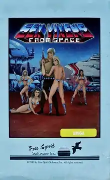 Sex Vixens from Space is an erotic interactive fiction game developed and self-published by Free Spirit Software and originally released in 1988 for the Commodore 64 and Apple II as part of the compilation Sex And Violence Vol. 1.[4] It was released as a standalone game, with the addition of graphics, in November 1988 for DOS and Amiga[5] and in 1989 for the Atari ST. Sex Vixens was inspired by the 1974 sexploitation film Flesh Gordon.[6] The game was panned by reviewers.[7][8][9][10][11]