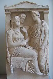 The most famous example of a sex strike in the arts is the Greek playwright Aristophanes' work Lysistrata, an anti-war comedy.[3] The female characters in the play, led by the eponymous Lysistrata, withhold sex from their husbands as part of their strategy to secure peace and end the Peloponnesian War.