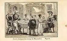 In 1834, abolitionist George Bourne wrote, "In the houses of slave-holders, you behold young ladies elegantly attired and attended by their coloured sisters, children of the same father, and yet slaves. You recognise the driver of the carriage, the footman, and other domestics as manifestly the planter's own offspring...Two ladies of the first rank in Virginia affirmed, that the Northern citizens were totally incompetent to form any correct idea of a slave plantation. One of them remarked: 'We are called wives, and as such are recognised in law; but we are little more than superintendents of a coloured seraglio.' When the old slave-driver is dead, the 'boy' who is most like him is generally called by his title; and you are often surprised to hear a mulatto coachman or footman denominated captain, major or colonel. You ask the cause, and are informed; 'the man is so like his father, that if it were not for the colour of his skin, he is such a chip off the old block, that you could not know them apart.' "[2]