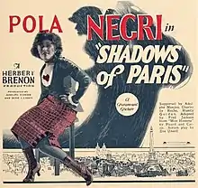 Shadows of Paris is a 1924 American silent drama film directed by Herbert Brenon and starring Pola Negri, Charles de Rochefort, and Huntley Gordon. The screenplay involves a young woman who rises from an apache dancer to become a wealthy woman in post-World War I Paris.[1] It was based on the play Mon Homme by Francis Carco and André Picard.