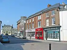 In 2005 there were 75 shops in the town, with a total floorspace of 7,200 square metres (78,000 sq ft). The retail catchment area for major food shopping extends about 4+12 mi (7 km) in all directions. National retail chains with a presence in the town include the Body Shop, Boots, Somerfield, Superdrug, Tesco and WHSmith.[40]