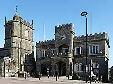 The town hall was built in 1837 by Earl Grosvenor after the guildhall was pulled down to widen High Street. It has been designated by English Heritage as a Grade II listed building.[23] Shaftesbury Town Hall is next to the 15th-century St Peter's Church which is Grade II* listed.[24] The Westminster Memorial Hospital was constructed on Bimport in the mid-19th century with a legacy from the wife of the Duke of Westminster.[25]
