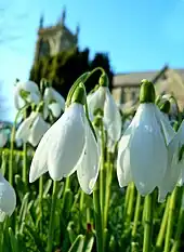 Shaftesbury Snowdrops is a Diamond Jubilee Community Legacy with the aim of creating a series of free and accessible snowdrop walks by planting snowdrops within the publicly open spaces and along the pathways throughout the town. The project was started in the winter of 2012 with the planting of 60,000 bulbs.[48] Since 2013 there has been an annual Snowdrop Festival to encourage tourists to see the snowdrops in flower.[49] Highlights of the festival include the Snowdrop Art Exhibition[50] and the Snowdrop Lantern Parade.[51] In 2014 Shaftesbury Snowdrops started a heritage collection of rare and unusual snowdrops.[52] These are held in trust for the people of Shaftesbury and displayed in Shaftesbury Abbey during the annual Snowdrop Festival. The collection is being built through sponsorship and donations.