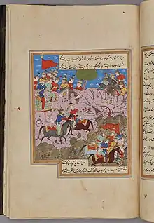 ![]() Shah Shoja Mozaffari being attacked while riding through the countryside. Folio from a manuscript of Nigaristan, Iran, probably Shiraz, dated 1573-74. | |