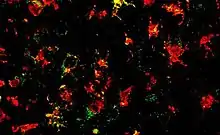 The inflammasome study conducted at the University of Queensland produced a promising new therapy to stop Parkinson's disease progressing through counteracting brain inflammation caused by immune cells.[28] The study primarily targeting ways to counteract immune cells, specifically the microglia which is highly activated in patients with Parkinson's disease by NLRP3 inflammasome. The NLRP3 inflammasome reacts to synuclein containing protein clumps by increasing inflammatory signals which contributes to the depletion of dopamine producing cells within the brain.[29] Whilst, recruiting more pathological proteins to create an intense cycle of neuroinflammation and a synuclein buildup within the brain.[29] The study found that a small molecule MCC950 administered orally once a day, stopped the development of Parkinson's disease in several animal models.[30] It was found to block NLRP3 activation within the brain and prevent both the loss of dopamine producing brain cells and neuroinflammation, resulting in significantly improved motor function - the leading symptom of parkinson's disease.[30] UQ Bioscience researcher Professor Matt Cooper stated that the “MCC950 molecule effectively ‘cooled the brains on fire’, turning down microglial inflammatory activity, and allowing neurons to function normally.”[31]