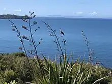 A 1.7-kilometre (1.1 mi) pest/predator-proof fence across the peninsula, completed in March 2011, protects the park's wildlife.[7] This includes resident invertebrates and lizards, along with birds migrating from the nearby Tiritiri Matangi island sanctuary.[8] Brodifacoum poison airdrops were conducted in July 2011 to eradicate mammalian pests.[9]