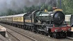 The Shakespeare Express is a steam-hauled passenger excursion train that has operated since 1999. It operates two trips in each direction on selected summer Sundays from Birmingham Snow Hill to Stratford-upon-Avon with a journey times of 60 to 70 minutes in each direction.[1][2][3] The outbound journey operates via the North Warwickshire Line with the return using the Stratford to Leamington and Chiltern Main Lines.[4][5]