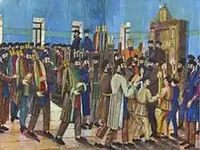 Shalom Koboshvili[lower-alpha 1] (1876 – 1941) was a Georgian artist who specialised in drawings and paintings of Jewish life in Georgia. Born to a poor family of Jews in Akhaltsikhe, Koboshvili was originally intended for the Rabbinate, but quit religious training at an early age. His interest in art was discouraged by his family, and he was originally apprenticed as a printer. All his knowledge of art was effectively self-taught. After a varied career (in which around 1910 he is said to have met with the artist Niko Pirosmani)[1] he eventually became in 1937 a watchman at the newly established Jewish Historic-Ethnographic Museum in Tbilisi. His work there apparently inspired him to devote himself to painting and all his surviving work dates from the period 1937–1941, the year of his death.