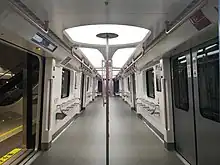 Shanghai Pudong Airport APM is an automated people mover in the Pudong International Airport. In the initial phase, there are two lines, each connecting a terminal building and a satellite hall. The two lines are planned to be connected after the completion of Terminal 3 in the future. The system uses Type A (Chinese: zh:A型车) metro trains, currently in a 4-car configuration, with conditions reserved for a 5-car configuration across the fleet.[2]
