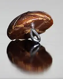 Shank buttons have a hollow protrusion on the back through which thread is sewn to attach the button. Button shanks may be a separate piece added to the back of a button, or be carved or moulded directly onto the back of the button, in which case the button is referred to by collectors as having a 'self-shank';[1] self-shanks are a common construction for older shell and glass buttons. Buttons with shanks have no holes in the button blank (the main part of the button) itself because they are not needed for sewing. Buttons with shanks are more expensive to produce than shankless buttons.