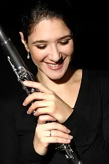 After completing her music studies at the Juilliard School of Music in New York, where she studied clarinet with Charles Neidich,[2][3] she made her orchestral debut as a 16-year-old with the Israel Philharmonic Orchestra under Zubin Mehta.[4] In 1992, she won the ARD International Music Competition,[4][5] followed a year later by the Davidoff Prix. In 1998 she received the ECHO Klassik Prize as "Instrumentalist of the Year" for her CD recording of the Weber concertos with the Gewandhaus Orchestra conducted by Kurt Masur. In 2006, she was again awarded for her CD with the Leipzig Radio Orchestra featuring works by Spohr, Weber, Rossini and Mendelssohn. Her 2002 CD "American Classics" with the London Symphony Orchestra under the direction of Gregor Bühl was awarded the German Record Critics' Prize.