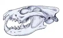 Archaeocyon A. leptodus Shannon & Jackson counties, South Dakota.[3] Middle & upper part of the formation.[3] Skull elements.[3] A borophagine dog.