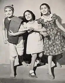 Kapoor as a child artist (left) with Baby Madhuri (Meena Kumari's sister, center) & Baby Shakuntala (right) in the film Bachpan (1945).