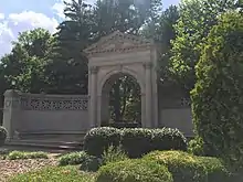 They each have one bricked up window, following an English custom of closing off windows, since taxes once were assessed according to the number of windows in each house. Designed by George Ingham Barnett, their interiors have high ceilings and sliding doors of heavy wood. They were built as rental property, but upon Shaw's death, certain houses were willed to the Garden. Exceptions were houses left to Shaw's housekeeper and relatives. Shaw Place became a private street in 1915. Today it is accessible from DeTonty Street.[4]