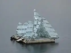 It is a permanent installation, floating on the water in the fjord on a concrete platform, rising 12 metres (39 ft) above the water surface. The sculpture turns on its axis in line with the tide and wind, offering changing experiences through reflections from the water and its transparent surfaces.[1]