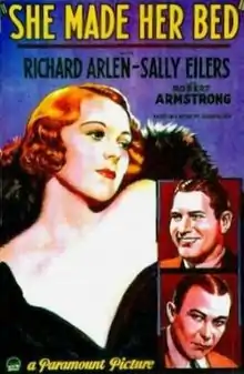 She Made Her Bed is a 1934 American pre-Code romantic drama film directed by Ralph Murphy and written by James M. Cain, Casey Robinson and Frank R. Adams. The film stars Richard Arlen, Sally Eilers, Robert Armstrong, Grace Bradley, Roscoe Ates and Charley Grapewin. It was released on March 9, 1934, by Paramount Pictures[1][2] and was described at the time as a "social drama" film[3] in which Arlen plays a "heroic villain."[4]