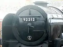 An 82F (Bath S&D) plate on the smokebox of 9F 92212