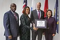 Oliver was sworn in as lieutenant governor on January 16, 2018.[36] She was the second lieutenant governor in the history of the state.[37] Oliver was also the first black woman to serve as lieutenant governor of New Jersey and the first woman of color elected to statewide office in New Jersey.[38] Oliver served as the Commissioner of the New Jersey Department of Community Affairs during her tenure as lieutenant governor.[39]