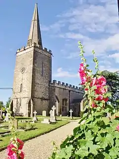 The Church of England parish church of Saint Faith has a late 12th century Norman nave and chancel.[2] The church still has its Norman chancel arch, south door, priest's door and part of the north door.[4] The west tower is an Early English Gothic[4] addition from the early part of the 13th century.[2] In the 14th century[2] the chancel was rebuilt with Decorated Gothic windows[4] and a Decorated window was inserted in the south wall of the nave. In about 1400 a chapel was added to the north side of the chancel, but it does not survive.[2] The tower arch was rebuilt in the 15th century.[2] Early in the 16th century[2] two four-light Perpendicular Gothic windows[4] were inserted in the south wall of the nave and another Perpendicular window was inserted in the north wall of the chancel.[4]