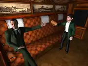 The game can be viewed from a first- or third-person perspective and it provides with an icon to indicate what actions Holmes can take within his world like pick up or talk. Holmes can move around via the mouse or the keyboard and his movement is completely free within the 3D space. While the game does give a fair amount of space to move around in each area, there are cases where Holmes must move to a new area screen or change his view of the street in order to move where the players want him to, but in those cases, an icon will show a set of footprints to indicate the change.