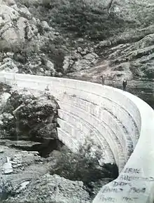 Sherwood Dam, known also as Lake Sherwood Dam,[2] Alturas Dam, and Potrero Dam, is a 270-foot-long (82 m) concrete arch dam in the Santa Monica Mountains near Thousand Oaks, California. Completed in 1904, its construction led to the creation of the 165-acre (67 ha) Potrero Lake (since renamed Lake Sherwood)[3] over the following winter. It was the first reservoir of its size in the area, and remains one of the oldest standing dams in California.[1]