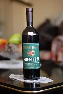The varietal is named for the Shesh Hills of Central Albania just outside Tirana, and is recommended served at approximately 65–68 °F (18–20 °C).[3]