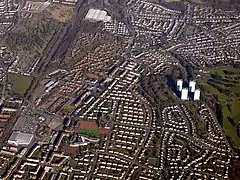 ![]() Aerial view over part of the Shettleston ward, looking east (2018) | |