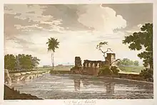 A View of Shekoabad, Dara Shukoh's hunting lodge outside Agra,ca. 1783, by William Hodges