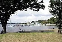 The Shimōsa Plateau is crossed by several short, shallow rivers and two small lakes. The Kuriyama River (38.8 kilometres (24.1 mi)) flows eastward from the central area of the plateau east of Narita International Airport to the Pacific Ocean.[7] The shorter Kido River (21.5 kilometres (13.4 mi)) similarly flows eastward and empties into the Pacific Ocean in the city of Sanmu.