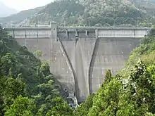 The Shimajigawa Dam is a concrete gravity dam on the Shimaji River 13 km (8 mi) north of Shūnan in Yamaguchi Prefecture, Japan. The dam was completed in 1980 and was the first dam to be completely constructed with the roller-compacted concrete method.[1]