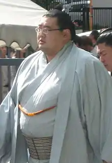 Shimotori competed in amateur sumo at Tokyo University of Agriculture, but did not manage to win a major national title.[1] He was recruited by the Tokitsukaze stable and made his professional debut in May 2000, almost a year later than intended due to injuries from a traffic accident.[1] Due to his amateur record he was given makushita tsukedashi status and began at the bottom of the third highest makushita division.