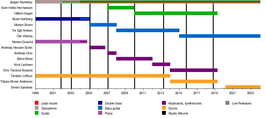 - Jørgen Munkeby – saxophone (1999–present), flute, clarinet (1999–2007), guitar (2002–present), vocals (2004–present)