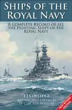 Ships of the Royal Navy is a naval history reference work by J. J. Colledge (1908–1997); it provides brief entries on all recorded ships in commission in the Royal Navy from the 15th century, giving location of constructions, date of launch, tonnage, specification and fate.
