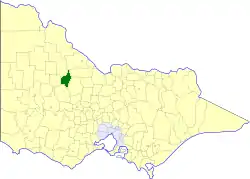 Charlton was first incorporated as a shire on 28 May 1895, upon the severance of portions of the Shires of Gordon, Kerang and St Arnaud.[2]