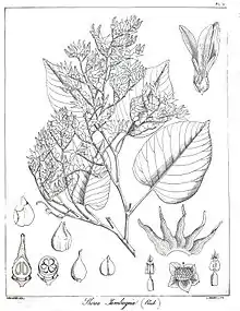 The species is commercially exploited for its timber and therapeutic purposes.[1] The heart wood is similar to sal but much smoother and better for carpentry. Plant parts are to be used as an external stimulant. The plant extracts used to cure ear-aches. Leaf juice is used as ear drops. The bark having anti ulcer activity. The stem is a source of resin, which is used as incense. The resin used to cure duodenal ulcers and amoebic dysentery. It is also used in indigenous medicine as an external stimulant and a substitute for arbutus for children.[2]