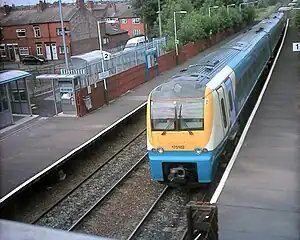 Trains operate approximately every hour on the North Wales Coast Line. Services travel between Llandudno and Manchester Piccadilly/Manchester Airport via Chester and Warrington Bank Quay. A number of morning & evening services between Holyhead and either Shrewsbury/Birmingham New Street or Crewe also stop here. There is also a direct Transport for Wales service from Birmingham International (Airport) to Holyhead, calling at Birmingham New Street, Wolverhampton, Shrewsbury, Wrexham, Chester and the North Wales coast stations including Shotton.[8]