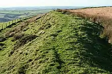 Shoulsbury Castle is an Iron Age hill fort close to Challacombe in Devon, England. It takes the form of a multi-ditch and rampart enclosure close to the top of a hill on the shoulder of Shoulsbarrow Common at an elevation of 472 metres (1,549 ft) above sea level.[1]