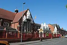 The Shree Geeta Bhawan Mandir (grid reference SP061897) is the first Hindu temple in the West Midlands of England, opened in a former church in 1969. It is situated at 107-117 Heathfield Road, on the corner of Brecon Road, on the border of the Handsworth and Lozells districts of Birmingham.