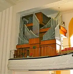 A prominent feature of the auditorium is a 3,312-pipe, 3-manual, 58-rank, Reuter Pipe Organ (Opus 1741) built in 1970.[9] The organ was designed by and named for organ professor Marianne Webb, who died on December 7, 2013.[10]