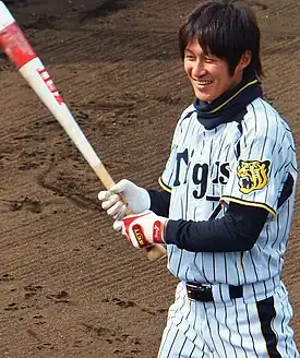 Shunsuke Fujikawa (藤川 俊介, Fujikawa Shunsuke), known simply as Shunsuke to some fans, is a Japanese professional baseball outfielder. He was born on August 17, 1987, in Fukuoka, Japan. He is currently playing for the Hanshin Tigers of the NPB.[1]