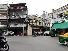The term "Si Kak" (Chinese: 四角) is a Teochew dialect meaning "four-way intersection" and "Sao Chingcha" (เสาชิงช้า) is a Thai word that refers to Giant Swing, a Hindu religious structure in front of Wat Suthat. In the past, there was also a Triyampawai ceremony during Songkran festival at the Giant Swing. The ceremony procession will begin at this intersection.[2] [3]