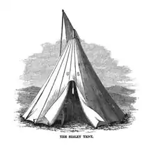 The Sibley tent was invented by the American military officer Henry Hopkins Sibley and patented in 1856. Of conical design, it stands about 12 feet (3.7 m) high and 18 feet (5.5 m) in diameter.[1] It can comfortably house about a dozen men.[2]