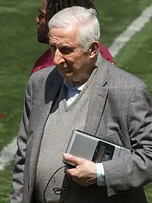 Hartman married Barbara Balfour in 1964.[28] They later divorced in 1972.[28] Hartman's son Chad Hartman also has a radio show on WCCO.[29] He also had an adopted daughter, Chris Schmitt.[28] Hartman described former Lakers player, former Vikings coach and frequent radio guest Bud Grant, whom he had known since 1945, as his "close personal friend".[16] He was also the one who inducted Grant into the Pro Football Hall of Fame in 1994.[30][16]