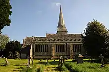 The parish of Siddington covers 862.34 ha (2,130.9 acres).[1] It is bordered to the north by Cirencester, to the east by Preston and South Cerney, to the south by Somerford Keynes, and to the west by Kemble.[36] The River Churn forms part of Siddington's boundary with South Cerney, as does the former RAF South Cerney (now the Duke of Gloucester Barracks).[25] Ermin Way (now followed by the course of the A419) is the parish's north east border.[25]
